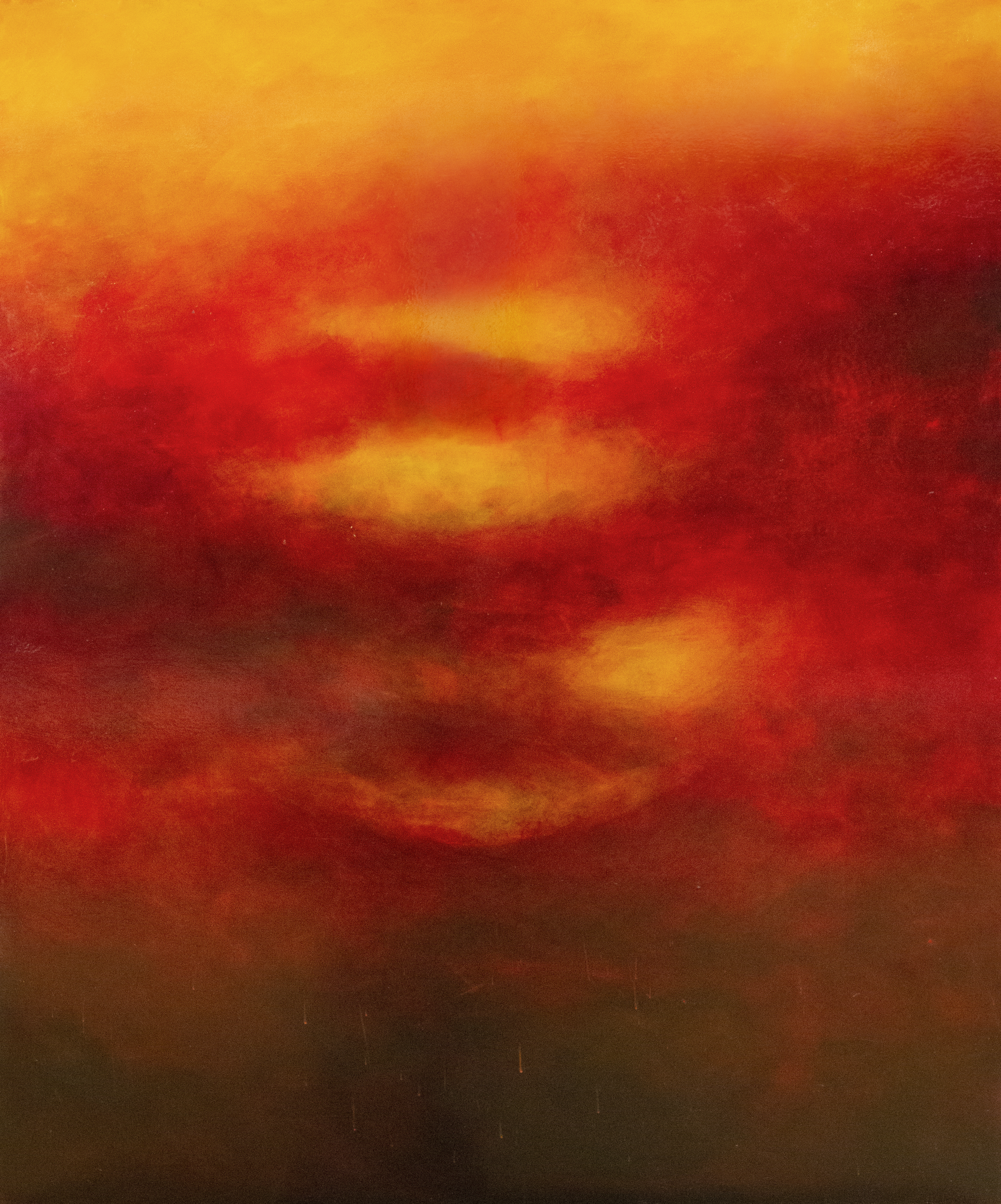 Newberry uses a very vibrant and dramatic palette in her artworks; the canvases are alive with linear dotted flows that describe movement, culture and history.
